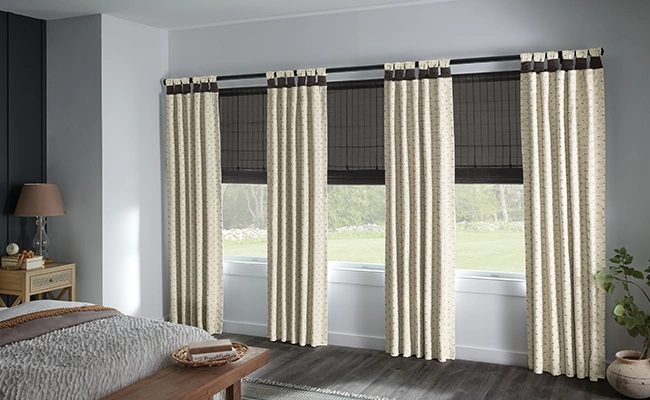 If you’re trying to create a unique look that will act as a dramatic design element in your home, think about layering your window treatments with stunning custom drapes.
